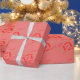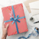 Designer holiday gift wrap, modern and stylish art design in greens, reds, and coral. The text can all be personalised with your own holiday greeting. Text is also removable.