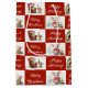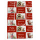 Watercolor Christmas mice on white background with holiday greetings text on red.