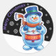 Christmas midnight round sticker Snowman drummer. and other Snowfolk.