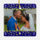 Mistletoe and flowers Christmas add your own special photo. Celebrate your family or the happy couple this Christmas with this mistletoe design in blue and green add your own special photo ornament. Perfect to remember your loved ones who can't be together this Christmas. Uniquely designed by Sarah Trett for www.mylittleeden.com