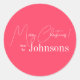 This is a stylish, Merry Christmas design. It is in trending modern pink and white and has the message, "Merry Christmas! from the Johnsons". Ideal for your Christmas gift wrap, mailing accessories. envelope seals, and party favour seals this festive season. To personalise, simply add your name in the personalise this text box. Here you can also change the rest of the text if you want to. Check out the design editing tool to change the colour or font. Merry Christmas! If you need help with personalisation, matching products, or for a custom design email: ursuladawnmoon@gmail.com