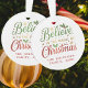 Celebrate the season with this “Christmas Modern Script Red and Green Typography Ornament.” Designed with festive script typography that reads “Believe in the Magic of Christmas” in green, gold, and red, surrounded by holly berries, gold snowflakes, shimmering stars, and cheerful red and green dots, this ornament brings classic holiday charm to your tree. Personalise with your family name or custom best wishes text in bold red typography on a crisp white background for a simple yet meaningful keepsake. A modern and festive way to say Merry Christmas while adding a personal touch to your holiday décor.