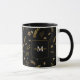 Drink your coffee in style with this chic mug featuring your monogram framed by Christmas Gold Arch Leaves pattern stars and dots. Fun and festive - the perfect mug for holiday gift-giving.