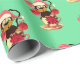 Christmas baubles on green background with a cute monkey wearing a Santa hat.