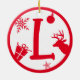 Christmas Monogram Letter L Red White Ceramic Tree Decoration