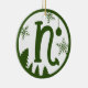 Christmas Monogram Letter N Green White Ceramic Tree Decoration