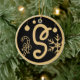 Christmas Monogram Letter S Gold Black Ceramic Tree Decoration