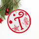 Christmas Monogram Letter T Red White Ceramic Tree Decoration