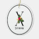 If your family monogram is X, then this ornament is for you! This beautiful design, trimmed with Christmas holly and ribbon tied into a bow, offered in the traditional yule colours...adorns this ornament, making it a timeless keepsake and fun addition to your Christmas tree decor! Personalise with your family name. You can customise further, if you would like to change the background colour. This ornament also makes a wonderful Christmas gift! Merry Christmas!