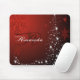 Christmas Monogram White Stars Tree Red Snowflakes Mouse Pad. Unique, beautiful, stylish design. Easy to be personalised. Font style, size and colours can be changed. Matching items are available.