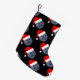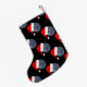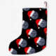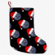 It's a classic cute Christmas stocking, featuring a blue moon emoji with a smile and eyes looking to the right, and wearing a traditional red and white Santa hat! Both sides of the stocking have the graphic on a black background. Customise it, choose from different stocking materials and sizes, and grab yours today!