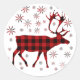 Christmas Moose, deer, elk, caribou, red plaids Classic Round Sticker