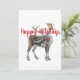 Watercolor moose with festive ribbon and holly on his bridle and customisable red "Happy Holidays" text