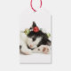 Christmas Morning Kitten sleeps after playing with the red and green Christmas garland all night waiting for Santa, photography by Kelly Richardson.