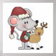 A Christmas mouse in a Santa stocking cap with the red nosed reindeer on holiday t-shirts, sweatshirts, cards, mugs, tote bags, keepsake ornaments, keychains, wall clocks, pillows, and more.