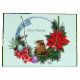Cute brown mouse on a Christmas wreath. Ornaments, poinsettias, and blue Celtic knot work on the Christmas wreath.