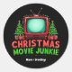 Christmas Movie Junkie Retro Holiday Funny Matchi Classic Round Sticker