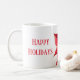 This ceramic coffee mug is shown with a festive holiday red poinsettia print.