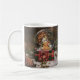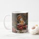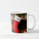 Christmas mug with a side-by-half on the fireplace and the snow globe with bear