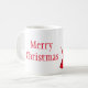 Ceramic coffee mug is shown with a festive Christmas holiday snowman art print with Merry Christmas in text.