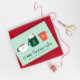 This card features cute illustrated holiday mugs to give a warm hug to friends and family.