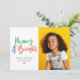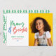 Christmas multi photo bright modern colourful neon holiday card. Colourful neon effect Merry and bright script with space for two vintage style photographs and neon christmas tree design backer.