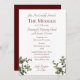 Christmas music invitation, with botanical accents on a white background. With dark red typography lettering, you can customise with your own text. Perfect for announcing your special performance this holiday season.