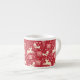 Bright red christmas patterned singing bird and jumping reindeer expresso mug. This original bold christmas patterned mug designed exclusively by Sarah Trett.