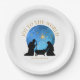 Beautiful Christmas Nativity | Joy to the World | Holiday Paper Plate. Design by Simon & Grace features beautiful nativity scene with silhouette figures against a globe shaped blue abstract watercolor night sky with faux gold stars, Joy to the World the Lord has come in decorative gold colored typography. Fantastic for Christmas time. We invite you to visit our Zazzle store, Simon & Grace, to view matching products and more. Please contact us if you require any assistance.