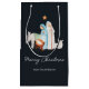 Charming dark blue nativity religious Christmas gift bag featuring a beautiful watercolor nativity scene. Perfect for sharing the season's joy with those closest to you. The words "Merry Christmas" are elegantly written below the scene, representing the magic and wonder of Christmas.