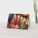 This is a photo of nativity figurines featuring baby Jesus in the manger, Joseph, Mary and the three wise men. Mary and Joseph kneel in adoration, and the wise men present their gifts. Personalise this Christian faith theme card with your own personal message.