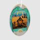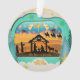 Vibrant Design: The striking contrast of the black silhouettes against the teal borders and orange/yellow sky makes this piece a colorful focal point on any Christmas tree.