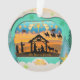 Vibrant Design: The striking contrast of the black silhouettes against the teal borders and orange/yellow sky makes this piece a colorful focal point on any Christmas tree.