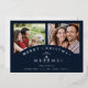 Christmas Navy Chic Luxury Chic Silver Effect 2 Photos Wedding Metallic Foil Save the Date Cards as a Holidays Cards.