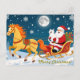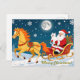 Christmas, New Year, Red Horse, Santa & White Cat Postcard