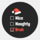 Christmas Nice Naughty Bruh Funny Xmas List Classic Round Sticker