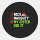Christmas Nice Naughty Sister Did It Xmas Family B Classic Round Sticker