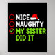 Christmas Nice Naughty Sister Did It Xmas Family Boys Girls