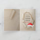 Children's Christmas greeting with adorable Gingerbread Man popping out of ripped with curled edges paper bag all decked out for Christmas while wearing a red Santa Hat. Each card will specify to whom the card is addressed to i.e. grandson, daughter etc.