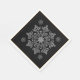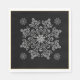 Shown in an white napkin, these paper napkins have ivory-white Nordic snowflake patterns on them over a black background and a matte gold-colour border.