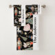 Personalised Christmas Nutcracker Ballet Bath Towel Set features holiday nutcracker ballet characters and symbols on black background with custom name or family name of holiday greeting personalisation. For family, friends or anyone you know who loves to decorate every room in their home for the holidays, this Nutcracker towel set is sure to bring joy and a warm seasonal welcome to any bath. These towels create a personal and memorable seasonal accent or a great gift for anyone who loves decorating their home for Christmas.
