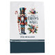 Colourful festive Christmas nutcracker with a candy cane, Christmas decoration, and sweet Christmas wishes retro typography.