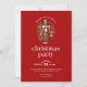 Christmas-themed Christmas party invite featuring Christmas Nutcracker and white retro typography. Holiday red colour background.