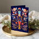 Christmas Nutcracker Floral Folk Art Deep Blue Holiday Card
