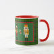 A festive group of Christmas nutcrackers on a classic green plaid background.