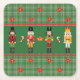 Cute a Christmas nutcracker design on green plaid background. Festive holiday decor.