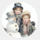 Christmas Old-fashion Children Snowman Watercolor Classic Round Sticker