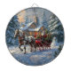Santa driving a one-horse sleigh to deliver Christmas presents in a small town