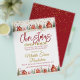 A gorgeous Christmas Open House Business flyer invitation. This glamourous gold and red holiday design features a snowy street scene with houses and trees.. Easy to customise with your own Holiday open house event details.