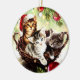 Adorable kittens under a Christmas tree is the scene on this Christmas ornament.